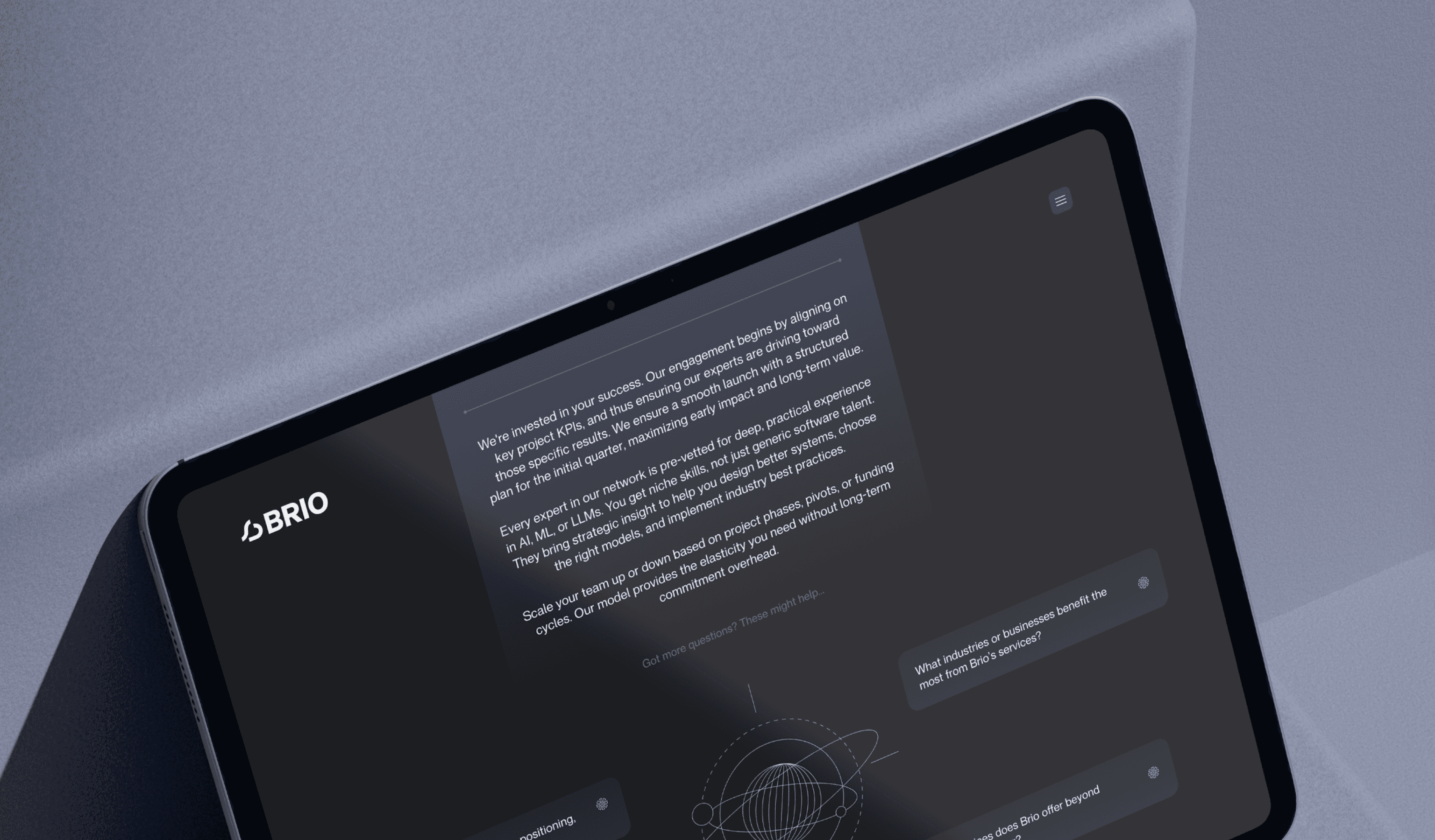 Brio is a partner for elite AI talent, focused on embedding senior experts directly inside the team. They manage the sourcing and vetting process, providing experts ready to help build and deploy advanced models and intelligent systems.