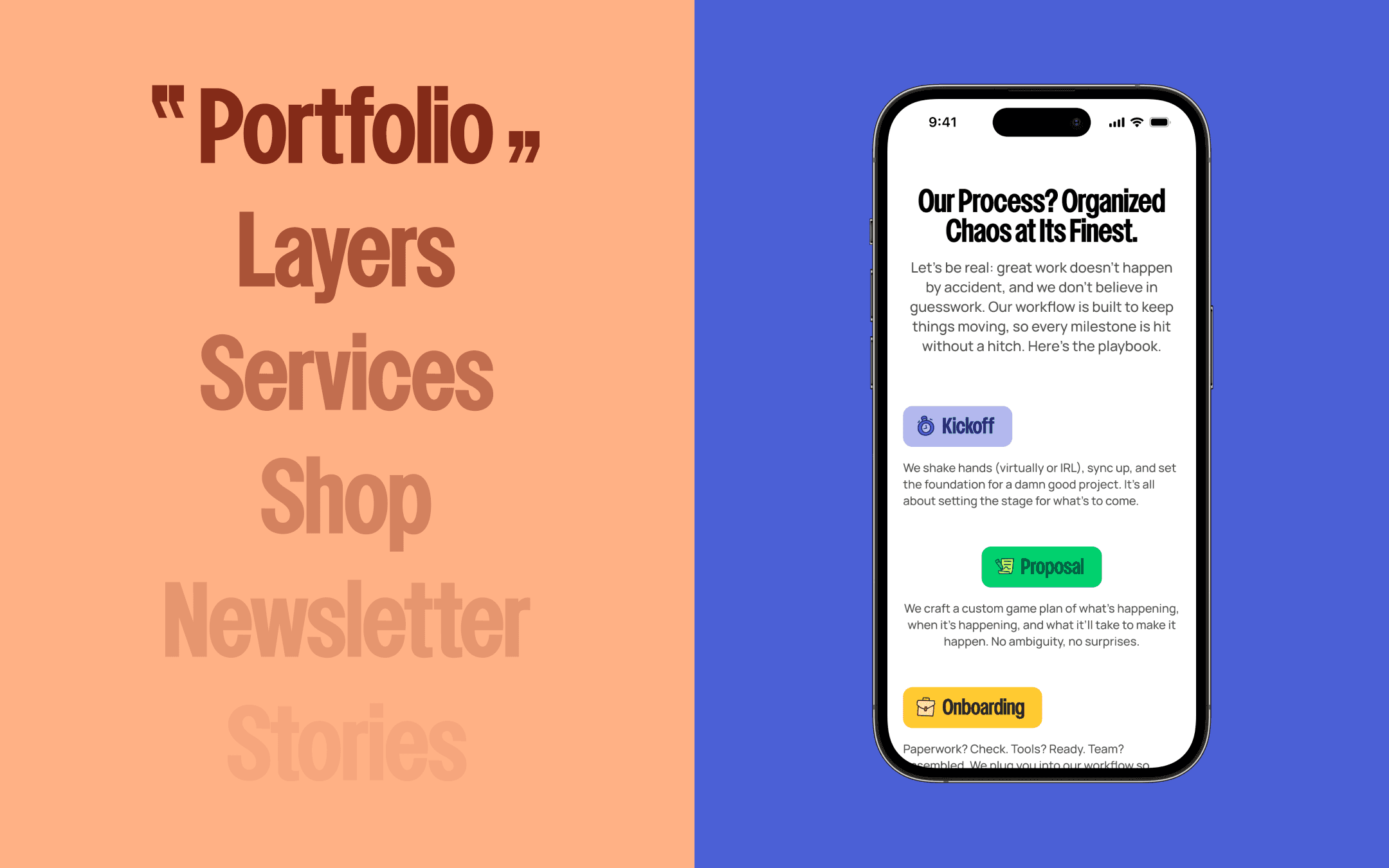 Turns out, building an agency from scratch is less like a coffee run and more like assembling furniture blindfolded, with one hand tied. There was heaps of the design work, directions that led nowhere. But then there was everything else. The case studies that took forever to write, social profiles that sat empty, documentation, legal stuff, bank accounts, business registration, tools, workflows, planning and everything else. All of this while keeping client work moving because, you know, bills don't pause for rebrands.